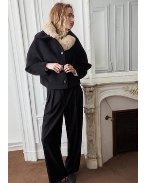 Wool Jacket With Shirt Collar - Black