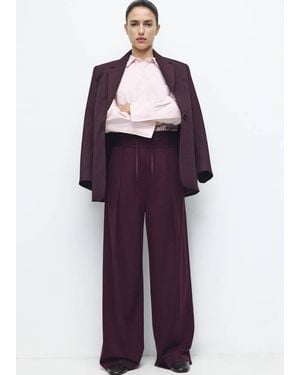 Pleated Pants With Combined Waistband - Purple