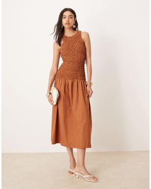 Sleeveless Shirred Body Dropped Waist Midi Dress