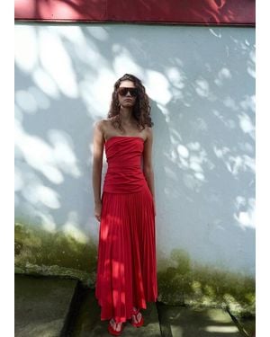 One Shoulder Maxi Dress With Ruching Detail - Red