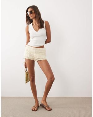 Loose-Knit Cotton Pajama Shorts With Elastic Waist - Blue