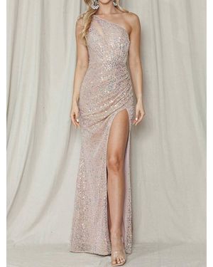 One Shoulder Shimmer Shine Prom Dress - Purple
