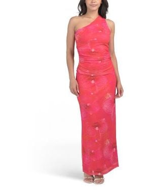 2Pc One Shoulder Mesh Orchid Top And Skirt Set For - Red
