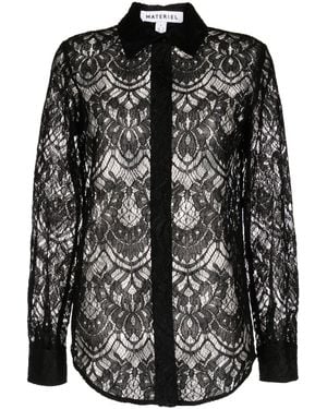 Lace-Detail Long Sleeve Shirt - Black