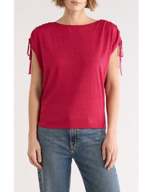 Ruched Shoulder Cap Sleeve Sweater - Red