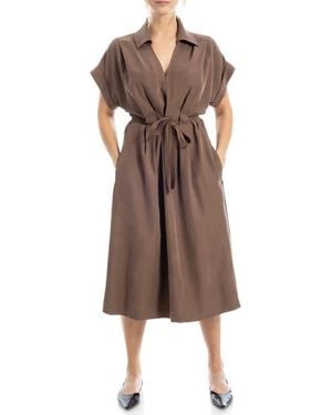 Rolled Sleeve Midi Shirtdress - Brown