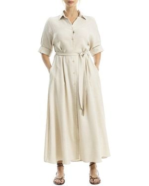 Large Roll Sleeve Belted Dress - Natural
