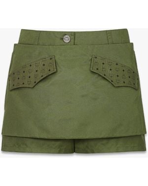 Skirt-layered Shorts In Econyl And Monogram Print Leather - Green