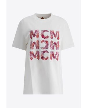Ribbed Crew-Neck Printed Cotton T-Shirt - Blue