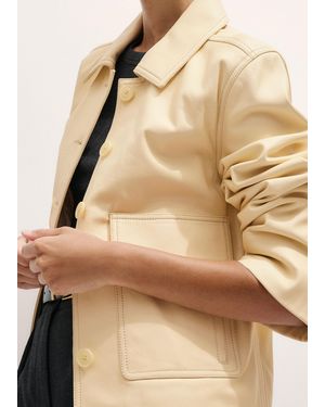 Relaxed Washed Leather Shacket - Natural