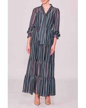 Stripe Bow Tiered Maxi Dress - Blue