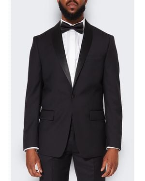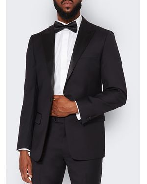 Peak Lapel Solid Wool Tuxedo Jacket - Blue