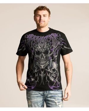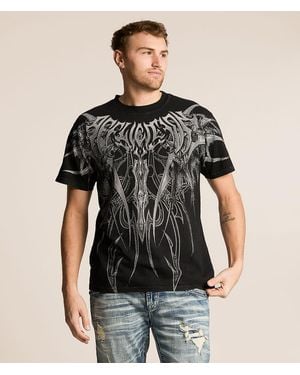 Inspired by and in collaboration with musicians, tattoo artists, martial arts organizations and biker culture, Affliction is a luxury ready-to-wear label specializing in daywear with attitude. Known for its signature graphic images, quality fabrics and associations with internationally famous brands like Harley Davidson and various top ranked MMA fighters, Affliction is growing in acclaim all-over the world. Affliction T-shirts are made from premium cotton and feature the bold graphics this brand is popular for. Casual, cool and edgy, these shirts will add a tough edge to your everyday closet.