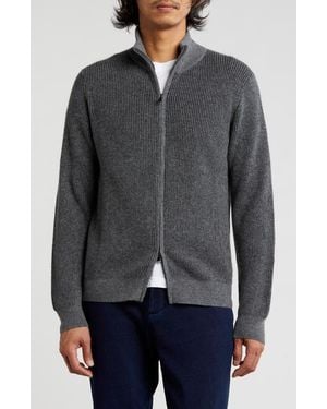 Rib Cashmere Zip Jacket - Gray