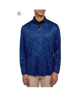 Regular Fit Paint Splatter Print Recycled Performance Quarter Zip - Blue