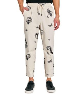 Slim Fit Skull Pleated Drawstring Pants - Natural