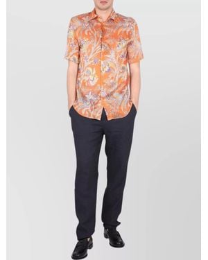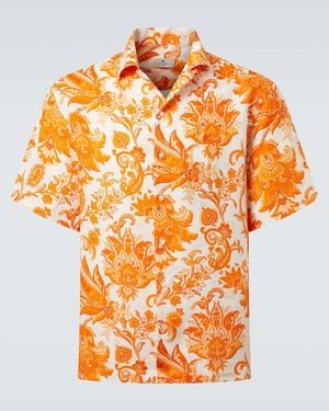 Floral-print Silk Crepe De Chine Shirt - Orange