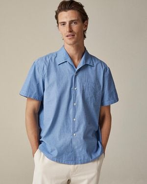 Short-Sleeve Secret Wash Cotton Poplin Camp-Collar Shirt - Blue