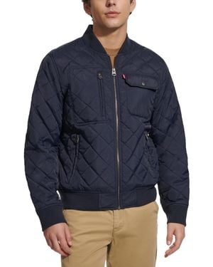 Regular-fit Diamond-quilted Bomber Jacket - Blue