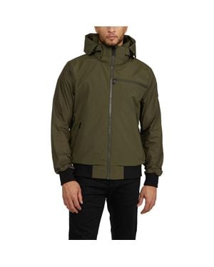 Pierce Mixed-Media Rain Bomber Jacket With Fixed Hood - Green