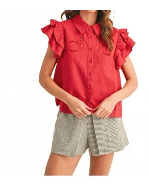 Embroidered Cut Out Button Down Top