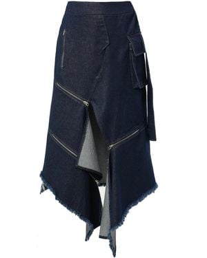 Asymmetric Dark Denim Skirt With Zippers - Blue