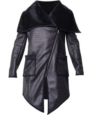 Croc-Effect Asymmetric Zip Coat With Draped Collar - Blue