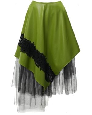 Vegan Leather Skirt With Tulle - Green