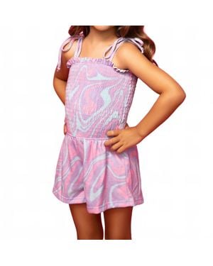 Girls Tie Strap Smocked Swirl Romper - Purple