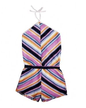 Girls Patterned Crochet Halter Romper - Blue