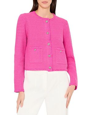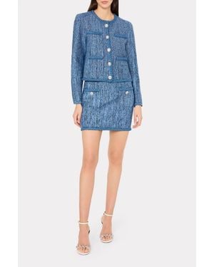 Designer Michelle Smith channeled a prestigious background in design, that included stings in fashion houses such as Louis Vuitton, Christian Dior and Hermès, into her own label when she launched luxury label Milly in 2001. Blending American sportswear references with techniques derived straight from Parisian ateliers, Milly creates a bold and distinctive take on femininity in its designs. Its striking yet wearable silhouettes, statement prints and luxurious fabrics have won the label a cult following. Intricate embellishments and unusual materials define the label's cardigans. Choose from simple ballet wrap styles, as well as leather boleros and monochrome designs in perforated mesh.