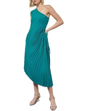 One-Shoulder Asymmetric Midi Dress - Green