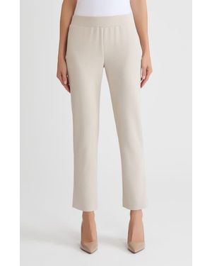 Stretch Deco Crepe Straight-Leg Pants - Natural