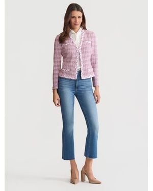 Tailored Braided Trim Tweed Knit Jacket - Purple