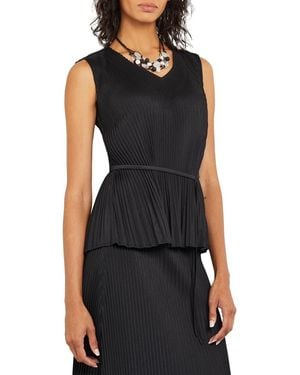 Tie Waist Pleated Sleeveless Top - Black
