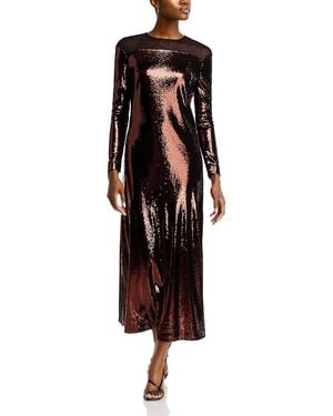 Sequined Long Sleeve Dress - Red