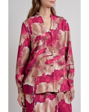 Brushstroke Print Crêpe De Chine Button-Up Shirt - Red