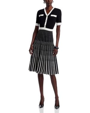 Fit-&-Flare Plaid Knit Dress - Pink