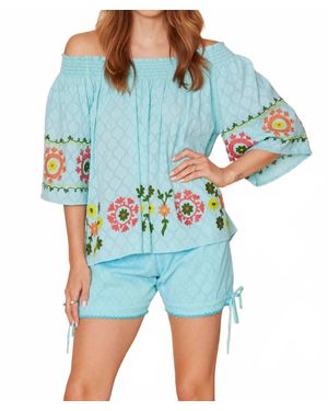 Enrica Off The Shoulder Embroidered Floral Top - Blue