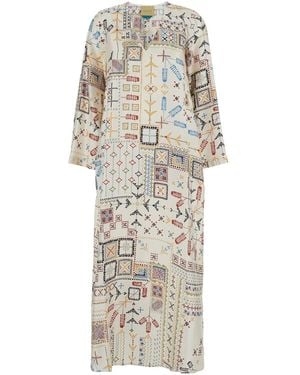 Geometric-Pattern Maxi Dress - White