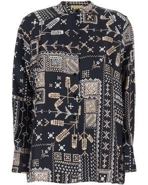 Silk Shirt With Raised Collar And All-Over Print For - Black
