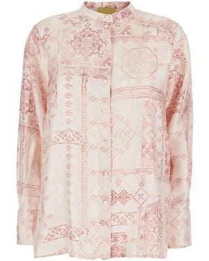Shirt With Raised Collar And All-Over Print For Wom - White