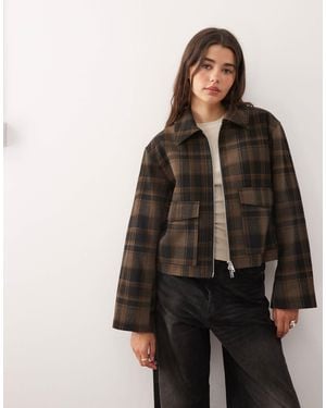 Short Collared Jacket With Wool - Brown