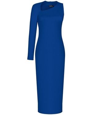 One Sleeve Asymmetric Neck Bodycon Evening Minimalist Midi Dress - Blue