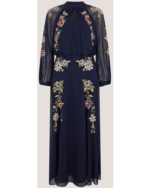 Annika Floral Embroidered Chiffon Midi Dress - Blue