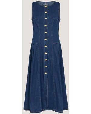 Madison Sleeveless Embroidered Midi Dress - Blue