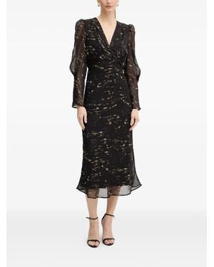 Long-Sleeve Printed Midi Dress - Black