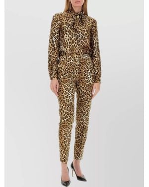 Animal-Print Slim-Fit Pants - Natural