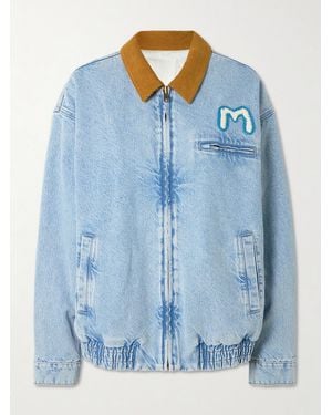 The Super Sizer Corduroy-Trimmed Appliquéd Denim Jacket - Blue