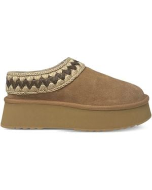 Suede Platform Mules - Brown